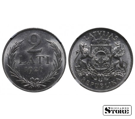 Латвия 2 Лата 1926 NGC UNC DETAILS
