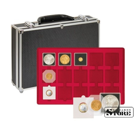 Suur numismaatikakohver 8 alusega, et paigutada 120 numismaatilist raami 50x50 mm.