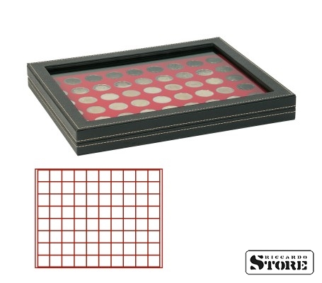 NERA M PLUS kast heleda punase plaadiga ja 80 ruudukujulise lahtriga müntide/mündikapslite jaoks, mille läbimõõt on kuni 24 mm.