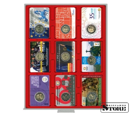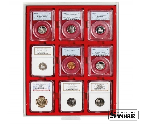 Mõeldud 9 sertifitseeritud mündi paigutamiseks, mille suurus on 63x85 mm, Ameerika grädimisseltsidest.