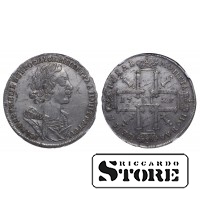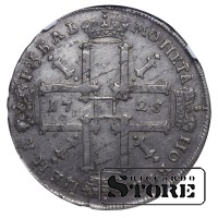 Vene Impeeriumi hõbemünt nimiväärtusega 1 rubla, välja antud 1725. aastal keiser Peeter I Suur (1721–1725) valitsemise ajal. Materjal — hõbe, kaal 28,44 g. Sertifitseeritud NGC hinnanguga XF DETAILS.