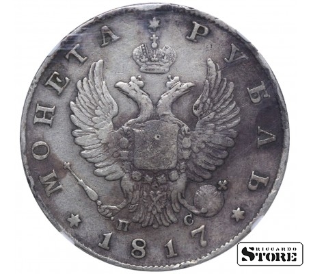 Vene Impeeriumi hõbemünt nimiväärtusega 1 rubla, välja antud 1817. aastal Peterburi rahapajas keiser Aleksander I (1801–1825) valitsemise ajal. Materjal — hõbe, kaal 20,73 g. Sertifitseeritud NGC hinnanguga VF DETAILS.