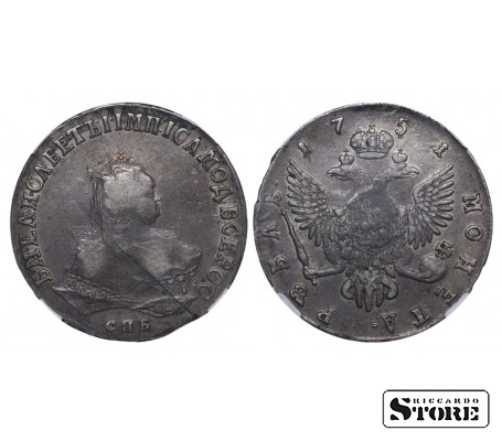 Vene Impeeriumi hõbemünt nimiväärtusega 1 rubla, välja antud 1751. aastal keisrinna Elizaveta (1741–1762) valitsemise ajal. Materjal — hõbe, kaal 25,85 g. Sertifitseeritud National Numismatic Register (NNR) poolt. Väärtuslik kollektsioneerimismünt XVIII sajandist.