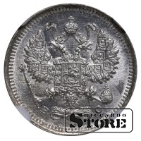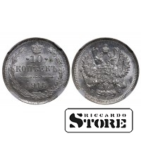 Vene Impeeriumi hõbemünt nimiväärtusega 10 kopikat, välja antud 1915. aastal keiser Nikolai II (1894–1917) valitsemise ajal. Materjal — hõbe, kaal 1,8 g. Sertifitseeritud NGC hinnanguga MS 66. Väga hästi säilinud kollektsioneerimismünt tugeva läikega.