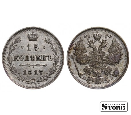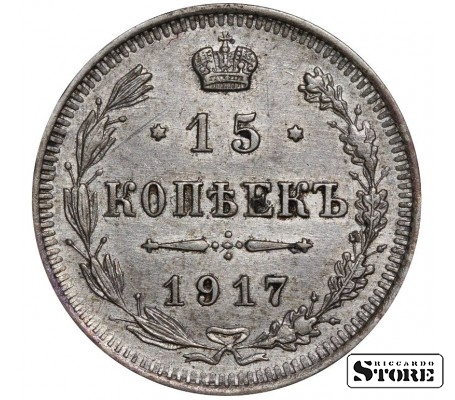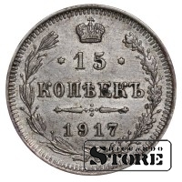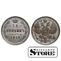 Vene Impeeriumi münt nimiväärtusega 15 kopikat, välja antud 1917. aastal keiser Nikolai II (1894–1917) valitsemise ajal. Materjal — hõbe, kaal 2,7 g.