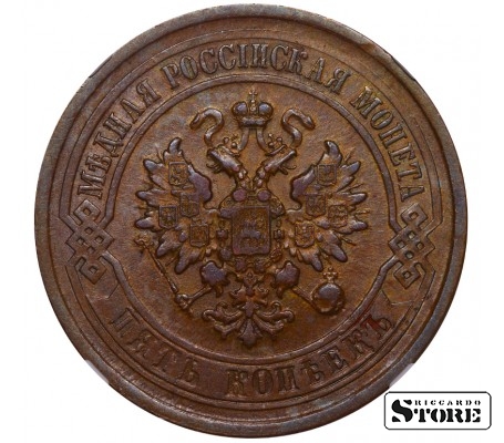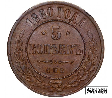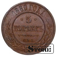Venemaa Keisririik, 5 kopikat, 1880. aasta, SPB, NGC AU 55 BN