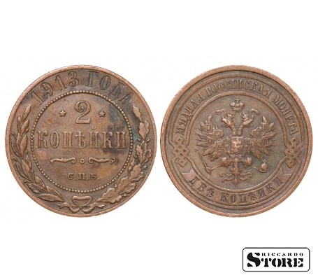 1913 Nikolai II Venemaa Vask münt Haruldane 2 kapeikų Y# 10 #RI1867