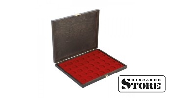 RAUCHGLAS numismatic box with 42 round compartments for coins up to 27.5 mm in diameter, ideal for 5 euro coins from Germany