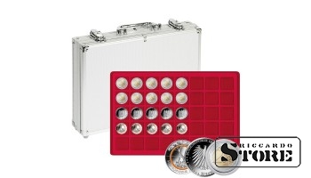 Dimensions: height 40 mm, width 236 mm, depth 303 mm. Can be stacked with other LINDNER collection and coin boxes.