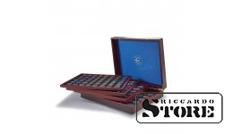 CARUS-1 wooden cassette with a dark red tray for storing 24 coins/coin capsules up to 42 mm in diameter