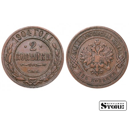 1904 Nicholas II Russia Coin Copper Coinage Rare 2 kopeks Y# 10 #RI1869