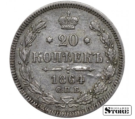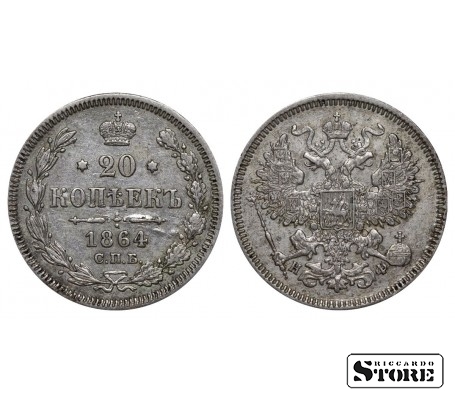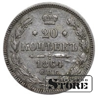 Монета Российской Империи номиналом 20 копеек, выпущенная в 1864 году в период правления императора Александра II (1855–1881). Материал — серебро, вес 4,08 г.